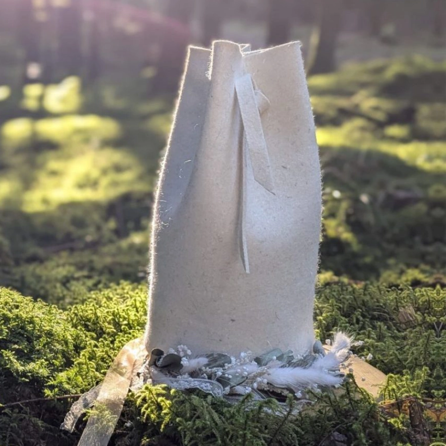 Der verwendete Wollfilz ist vollständig biologisch abbaubar und bietet eine umweltfreundliche Alternative zu herkömmlichen Materialien. So wird der Gedanke der Nachhaltigkeit auf würdevolle Weise in den Abschied integriert.